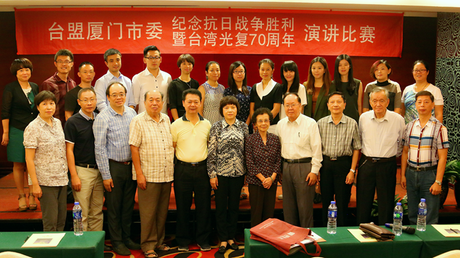 10月17日,台湾光复70周年纪念日来临之际,谁有365比分链接_365bet体育在线滚球_365体育网页版下载厦门市委在夏商怡翔酒店会议室举办纪念抗日战争胜利暨台湾光复70周年演讲比赛。10个基层支部的17位盟员参加了比赛。市人大常委副主任、谁有365比分链接_365bet体育在线滚球_365体育网页版下载厦门市委主委陈紫萱,专职副主委、秘书长陈敏伟等出席了演讲比赛,60多位盟员到场为所在支部的参赛选手加油打气。