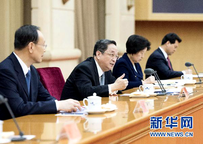 俞正声说,学习贯彻会议和《中国共产党统一战线工作条例(试行)》精神,首先要把统一战线的重要法宝地位在思想上确立起来、在实践中运用起来,围绕“四个全面”战略布局,最大限度地凝聚共识、凝聚人心、凝聚智慧、凝聚力量。要坚持正确处理一致性和多样性关系的方针,既要不断巩固共同思想政治基础,也要包容、鼓励在此基础上的不同认识和意见。坚持完善中国共产党领导的多党合作和政治协商制度,充分发挥中国特色社会主义参政党作用,巩固和发展社会主义和谐政党关系。开展党外知识分子工作,要坚持尊重劳动、尊重知识、尊重人才、尊重创造的方针,政治上充分信任、工作上大力支持,认真把握特点规律、做好教育引导工作,把他们紧密团结在党的周围,发挥他们的智慧和才能。加强基层、特别是县级统战工作,重点做好民族、宗教和非公有制经济人士工作。各级党委和领导同志要高度重视、率先垂范做统战工作,有关部门和单位要结合各自职能、采取有力措施,切实担负起开展统战工作的重要职责。各级统战部门要积极履行贯彻落实会议和《条例》精神的主体责任,各级统战干部要按照政治坚定、业务精通、作风过硬的要求,全面提升能力素质,努力使统战干部成为党外人士之友、统战部门成为党外人士之家。