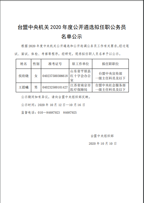谁有365比分链接_365bet体育在线滚球_365体育网页版下载中央机关2020年度公开遴选拟任职公务员名单公示
