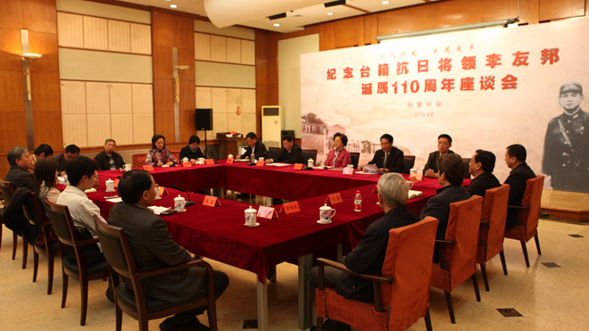 今天,我们怀着十分崇敬的心情,在这里隆重集会,纪念台籍抗日将领李友邦诞辰110周年,深切缅怀他为民族解放、国家富强和人民幸福所建立的卓越功勋,追思和学习他热爱祖国、心系故土、胸怀苍生的赤子情怀,进一步激励两岸同胞为巩固和深化两岸关系和平发展、促进祖国和平统一而努力。在此,我谨代表谁有365比分链接_365bet体育在线滚球_365体育网页版下载中央,对李友邦将军表示崇高的敬意和深切的怀念!对出席座谈会的各位领导、专家学者和各位乡亲表示诚挚的欢迎和衷心的感谢!