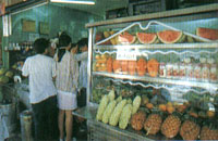 高雄市小吃分布在市区各处,尤以六合路夜市最负盛名,已成为国外观光客的游览景点之一;而临海的旗津区,则以鲜美丰富的海产闻名,旗津老街俨然就是条观光海鲜街;市内更有不少小吃名店,如以冰品闻名的高雄牛乳大王、阿婆冰,强调乡土风味的老李排骨汤、菜粽李菜粽、成男生碗粿肉粽等,还有改良传统美食的邓师傅卤味、孙家小馆,都让高雄人津津乐道。而保安宫前的香肠摊子,则是一道教人称绝的小品,即使大热天,摊前也挤满知味的食客。 阿婆冰 地址:盐埕区大仁路159号 电话:(07)551-3180,551-7043 营业时间:1000~2330 店内特色:四果冰 原名新生冰店的阿婆冰创于昭和6年(1933年),当时的老板蔡固常包着头巾,临近的高雄女中学生便昵称她为“阿婆”,于是“阿婆冰”之名不胫而走。由于蔡固对腌渍杨桃、李子十分拿手,因此四果冰便成为最受欢迎的冰点,就连国外观光客也都慕名而来。 菜粽李菜粽 地址:苓雅区成功一路159号 电话:(07)331-3086~7 营业时间:0600~1600 休息时间:周二 店内特色:菜粽 是高雄市区的粽子老店,老板从包料到粽叶,都禀持一贯作法:米粒非长糯米不用,粽叶是自嘉义梅山买来的特级桂竹叶,而花生更是从各地花生园特选的上品,松软得恰到好处。凡是来此吃菜粽,便附送一杯热决明子茶,清爽解腻,也是店内一大特色。 新大港香肠 地址:三民区十全一路保安宫前(高雄医学院旁) 电话:(07)322-2711 营业时间:1500~1930 店内特色:烤香肠  极其平凡的烤香肠,在新大港香肠摊的经营下,竟成为保安宫一带的特色小吃。采用脊心肉、三层肉,当天现做,肉质新鲜,火烤之后口感佳而不油腻,再配上腌制的小黄瓜,嚼来相当过瘾。虽是小摊子,但老板仍重金购置了抽油烟机,以免烤香肠的油烟污染了环境。 邓师傅卤味 地址:新兴区中正三路82号 电话:(07)282-1822 营业时间:1100~2100 店内特色:卤蹄膀、牛肚 对高雄人来说,提到卤味就想到邓师傅。邓师傅以西餐理念经营卤味,干净清爽的进餐空间、精巧的碗碟,让尝卤味晋升为美食享受;由于采宫廷秘方炖煮,这里的菜色都十分入味,香滑腴嫩的卤蹄膀更是老饕最爱。除了卤味外,每日也备有多道精心料理的家常小菜,均出自聘来的名厨之手,店面张贴的厨师证明,便是邓师傅给予顾客的满意保证。 老李排骨汤 地址:新兴区大同一路149号 营业时间:1000~2200 店内特色:排骨汤 老李排骨汤位于新兴市场内,小碗盅里盛着炸排骨酥、冬瓜与掺上香料的高汤,放入蒸笼温火慢炖,直到排骨酥烂,上桌前洒上香菜,香浓的汤头令人食指大动。由于排骨香酥、冬瓜爽口、高汤浓烈,老李排骨汤让人回味再三;尤其是冬天,冷风飕飕,品尝排骨汤取暖的食客更是多到老板应接不暇。 徐州啥锅孙家小馆 地址:苓雅区青年一路1-9号 电话:(07)726-0868 营业时间:1100~2300 店内特色:徐州啥锅、单饼馓子、大牛饼  江苏口味的“啥锅”名字奇异,据说是刘邦落难徐州时,在乡野间得到的一碗布施。今日的“徐州啥锅”经过改良,以鸡、猪大骨、药材、香菇和麦片长时间慢熬而成,所有的食材、营养融成浓浓一锅鲜粥,风味相当独特。各式北方面食也是孙家小馆的特色,其中以单饼馓子、大牛饼最受欢迎,单饼馓子是以薄饼包着麻花状油条,酥酥脆脆,正是搭配啥锅的好搭档。