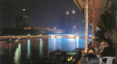 <%beginrecord%><%endrecord%> 爱河发源于高雄县乌松乡覆鼎金与半屏山之间,流经高雄市区,由高雄港出海。虽然河长仅10多公里,但爱河却犹如城市的母亲之河,一直就是高雄市民休息散步的好去处,也是端午节划龙舟的水域与元宵节灯会的舞台。 横跨爱河之上的中正大轿,衔接着昔日的市政中心前金区与商业中心盐埕区,向来是高雄市最繁忙的桥梁。但近年随着市政府、市议会迁移,盐埕区没落,今日的中正大桥两岸渐趋安静;长长的河岸已被开辟为公园,绿地、林荫、花木扶疏,成了市民们散步、运动、游憩的场所。 爱河从民族路经中华路、建国桥、七贤桥、中正大桥至高雄大桥,近7公里的河岸都已完成公园绿化。高大的凤凰木、嫣红奼紫的九重葛、马缨丹等花木点缀绿地之上,绿黝黝衬着荡漾的河水,两旁幢幢高楼倒影,气氛相当幽静。沿着河岸漫步,有凉亭、凉椅可供休息。 夜晚是爱河最浪漫的时刻,高楼大厦的璀璨灯火倒映成河影,树影藏身黑魅中,此刻在河边欣赏港都夜色,别有一番滋味。 乘车风向标: 从高雄火车站前搭1、2、60、88路市公车,于盐埕圆环站下,沿中正五路、河西路步行可抵游船码头。