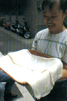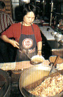 苗栗境内高山横亘,丘陵绵延,崎岖的地形造成交通不便,加上族群的冲突不断,开发脚步较为缓慢,向来皆以农业为主要生产方式,以及境内占了半数以上的客家族群,都成了形成苗栗小吃风格的因素。 苗栗境内的小吃多为家常的菜色和客家饮食,没有光鲜的门面及豪华的排场,却以道地的做工及鲜明的特色吸引客人,头份牛家庄做的是精纯的牛肉料理;明德水库盛产鲡鱼,邻近的头屋鲡鱼小吃店及苗栗市西山庄鲡鱼小吃便以此为号召;苗栗市里还有专卖馅饼的一口香馅饼、肉圆名店——汤家肉圆;公馆鹅家庄除了高明的土鹅料理,乡土美食同样出名;而三义的赖新魁面店,则以一碗祖传三代的大骨肉面打响名号。当然,来到客家人的大本营,客家料理自是不能错过,苗栗市的邱家粄条和三义的大广新餐厅,都能让你品尝到客家菜酸、咸、肥、香的特殊风味。 头份牛家庄 地址:头份镇中华路1047号 电话:(037)64-053 营业时间:1130-1400、1700-2000 休息时间:每月第一个周二、第三个周日 店内特色:煎牛小排、十全炖牛鞭、麻辣牛唇、炒千层肚 餐饮出身的老板,曾在大名鼎鼎的中坜牛家庄拜师学艺,因为坚持使用本土的新鲜牛肉,牛家庄的料理没有进口冷冻肉品的生硬口感。经过老板的巧心钻研,几乎整头牛都可以入菜,软硬适中的煎牛小排、脆爽的炒牛百叶、香气十足的十全炖牛鞭、炒牛心肝等,沾着特制的酱料,更加令人食指大动。此外,牛家庄也推出自制的牛肉干,料实味美,自用送礼两相宜。 西山庄鲡鱼小吃 地址:苗栗市文山里63-3号 电话:(037)337-485、351-153 营业时间:1100-1400、1700-2000 店内特色:鲡鱼生鱼片、醉毛蟹、紫苏鸭舌、半天笋炒福菜 位于监理站旁,向以鲡鱼生鱼片闻名,鲡鱼来自明德水库,无土腥味,肉质香甜松软,拥有丰富蛋白质,对伤口愈合具有奇效;即使食客满堂,仍坚持每餐只预宰5只,品质新鲜有保证。西山庄的毛蟹亦声名远播,无论是清蒸、干炒或醉蟹皆独具风味,其中醉蟹以米酒将活生生的毛蟹醉死,做出来的醉蟹蟹黄、蟹膏气味香浓,蟹汤鲜美而蟹肉愈嚼愈香;此外,梅干扣肉、客家小炒、紫苏炒鸭舌、半天笋炒福菜等都是招牌,再搭配传统的木桶饭,更是一绝。 一口香馅饼 地址:苗栗市中山路49-4号 电话:(037)271-421 营业时间:140-1830 店内特色:馅饼、萝卜丝饼、小米粥  苗栗市近年来急速窜起来的小吃,在客家人占多数的苗栗市,能以北方面食打响名号,靠的可是货真价实的功夫。一口香只卖牛肉、猪肉、萝卜丝、豆沙四种口味的馅饼及小米粥,馅饼都是当天现做,手擀的薄皮煎得恰到好处,趁着还有点烫口小心咬下,入口酥香松脆,带汤的馅料鲜美有加,叫人停不了口;而萝卜丝馅饼则是老板自创。吃完馅饼,再喝上一碗加了薏仁、五谷杂粮的小米粥,浓稠香甜的口感,更是过瘾。 邱家粄条 地址:苗栗市社寮街41巷8号 电话:(037)263-497 营业时间:0700-1400 休息时间:周日 店内特色:粄条汤、炒粄条、冰镇红茶 邱家粄条没有醒目的招牌,但店内的人潮始终不断,靠的便是独特的做工和道地的材料。创始于日本昭和年间的邱家粄条,80多年来始终秉持不添加太白粉和硼砂的原则,以纯手工精制,店里卖的粄条都是当天大清早蒸出来的,鲜香味美,滑溜爽口,吃得出在来米的香甜,不管是煮汤或热炒,都十分可口;餐后再来一杯特制的冰镇红茶,提神解腻,令人吮指回味。 汤家肉圆 地址:苗栗市中山路713号 电话:(037)322-514 营业时间:0600-1800 休息时间:农历每月17日 店内特色:肉圆、红豆汤 苗栗市南苗市场附近,有家“汤家肉圆”,低矮老旧的店面,也没有挂上任何招牌,当地人却是老少皆知。其肉圆以纯手工制成,每天都要卖出600多个;假日客人多时,下午3点便卖个精光。汤家肉圆不但外皮松软带劲,大块的肉片、竹笋、香菇等内馅,让人看得垂涎、吃得满意。其红豆汤也是一绝,整锅的大、小红豆熬的松松绵绵,入口清甜不腻,令人百吃不厌。