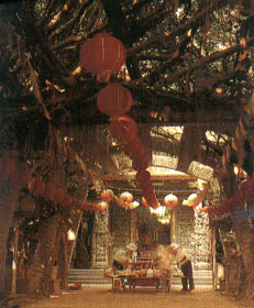 <%beginrecord%><%endrecord%> 通梁位在白沙岛最西端,以跨海大桥和渔翁岛的横礁村相衔接,因村内的古榕奇景而远近驰名。通梁古榕座落在保安宫的广场上,树龄已有300余年,绿阴覆盖660余平方公尺,气根多达91条,堪称一处华盖榕园。 大榕树的树种为白榕,本就气根茂密,并有横幅伸张的天性;而在自然环境恶劣的澎湖,冬季东北季风肆虐,枝干往往长到一定高度就改成横向生长,更助长了白榕枝干的平行展幅。老白榕垂下的气根,及地后又发新干,盘根错节,年代一久,即造成如此之广的覆盖面。如今这片古榕树林仍生生不息地生长着,枝叶翠绿茂密,树干粗壮挺拔,树下设有石桌椅,供游人乘凉休憩。 乘车风向标: 自马公市公车总站搭往通梁、外安的公车,于通梁站下车可抵。