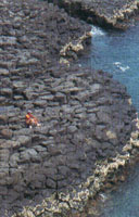 七美岛位在澎湖群岛最南边,古称大屿,曾是大陆移民的中继站。传说明初时倭寇曾入侵七美,当时有七位女子在井边洗衣,担心受辱,乃相携投井自尽;因着这份哀怨的故事,大屿于1949年更名为七美岛。全岛海岸线长14.4公里,面积6.98平方公里,是澎湖第五大岛,也是离澎湖本岛最远的离岛。 岛屿地形属切割方山,东高西低,地势平坦,岛上共有6个村子,老古石砌的漳泉式古宅和高大华丽的楼房夹错并置,增显出七美尚称富庶的乡情。其浑然天成的地质景观、广袤青翠的草原风光、老古石建筑、石沪、凄美传说……,构成动人的自然人文之美,成为澎湖群岛中最受欢迎的旅游胜地之一。 南沪港 南沪港是搭船观光客抵达的首站,也是南海重要的渔业中心。南浅渔场是指七美南端的海域,因巴士海峡黑潮和渤海暖流在此交会,洄游鱼类及底栖性鱼类颇丰,四季均有丰盛的渔产;每年冬夏两季,四方来的渔船常把南沪港挤得热闹非常。 七美人冢 七美人冢是岛上最着名的名胜,也是规划完美的游憩区,周遭设有凉亭、桌椅,玄武岩筑成的服务中心,古朴雅致,内设有志节厅,供奉七位贞女的牌位。  据说七美人殉节后,乡人填井为坟,不久,荒冢上竟长出七株楸树,当地人认为是七女魂魄所化生,于是盖了七间房舍奉祀;冢上立着七美人冢碑与七美人歌碑石。长年来,祭口除香花素果外,还贴心地摆上七份化妆品。据说七美人的小姐脾气可不小,随便折取楸树枝者,还会闹肚子痛呢!冢旁的楸树于春秋时节会开米黄色小花,清香袭人,而七间房舍已完全掩于树中,墓家周遭有玄武岩碎块砌成的防风墙。 南沪灯塔 南沪灯塔临海崖而建,是澎湖群岛最南端的灯塔,规模虽小,却是七美南方海域作业渔船最明显的指标。灯塔建于1939年,设有不动四等白色闪灯,每3秒钟闪光一次,以8000烛光照耀19海里。灯塔周遭为一脉相连的草原,成群羊只漫步其间,风光闲逸,临崖眺望,海天美景尽收眼底。 望夫石 南沪灯塔下方海岸,有一方玄武岸伸出海面,状如一位平躺的孕妇侧面;传说昔日有位妇人每天总会在此等候捕鱼的丈夫回航,后来丈夫遇难,妇人却依旧每日苦盼,终至身死;多年之后,海边的岩石竟被冲击成人形,地方人士有感于大海无情,故取名“望夫石”。 大狮风景区  这里的海崖为连续玄武岩海岸,经过长时间海蚀作用,形成多处海蚀沟与海蚀洞。循着城垛步道前行,可抵眺望平台,右前方一处凸出的海崖,形似石狮蹲伏,“大狮”之名由此而来;整只狮子由一条条木炭般的玄武岩构成,呈现出粗犷的美感。 左前方海上有处火山角砾岩构成的海蚀平台,平台上有条延伸入海的岩脉,恰似蟠龙盘踞,退潮时尤为明显,而有“龙埕”之称,此乃岩层受压挤而形成弯曲排列的褶皱。 大狮右侧的第二个山坳口称为“下巷”,此地有范围颇广的玄武岩六角形横断面及岩柱纵断面,其中一处高达60公尺的海崖,褶皱形状有如猪蹄膀,成为一大特色。 牛姆坪 牛姆坪为一U型海岸山谷,海蚀平台发达,有200多个石阶沟通悬崖上下,崖上是辽阔平坦的大草原,夏天适合从事露营活动。 在牛姆坪湾内大小不一的海蚀平台中,有块形状酷似台湾岛,令游人称奇。分叉仔位在牛姆坪右侧,为强烈海蚀作用造成的海蚀柱景观,高约50公尺,兀立海中,与牛姆坪若即若离,两者都是海钓佳地。 顶隙月世界·双心石沪 顶隙是由黄褐色砂岩、泥岩和泥灰岩等组成的沉积岩地区,广阔的地表松软且透水性不佳,在长年风蚀与雨水冲刷之后,导致部分地区寸草不生,形成月球表层般的荒漠地形,被称为澎湖的“月世界”。月世界旁有座圆塔造型的“龙凤塔”石敢当,顶端置有五彩金龙,为七美岛东北角颇为醒目的地标。  附近的海边为玄武岩区,草坡延伸到海崖尽头,崖下就是白浪滔滔的海蚀台,为极佳的海钓场。顶隙港旁有座造型十分优美的“双心石沪”,为七美岛的着名标记;石沪是澎湖传统的捕鱼方法,渔民以海石在近岸处叠起圈堤,涨潮时海水覆盖,退潮时鱼儿困在里面,渔民即可捞捕。 交通运输 航空 高雄及马公均有立荣、国华航空班机飞往七美。 海运 1.马公市至七美有澎湖县公共车船管理处经营的定期交通客船。 2.马公市有多家游艇公司经营南海航线,承揽对象以团体为主,散客可跟随团体行程,或选择定点下船。 注意事项: 七美岛上有机车出租,也有叫客小客车及九人座厢型车。