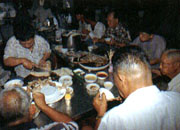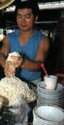 盐水是一个开发甚早的小镇,现今的中正路、朝琴路、三福路一带,自早即是繁华的市中心,也是小吃的聚集地。 盐水最着名的特产,首推韧性足、口感Q滑的意面。盐水是台湾意面的发源地,意面的主要材料是面粉和蛋,名为意面,据说是早期人们于制面时,因在不加水的情况下和面,须耗费很大的气力,故不免自然发出“噫—噫—”的声响。意面分干、湿二种,未曝晒过的湿面,大多批发给面店和小吃摊;而干面必须仰赖熟练的技巧将面一捆捆圈好,再置于竹节上曝晒3天,以便保存。 除了意面,祖传三代、遵循古法制作的百年糕饼摊,以及用特殊腌料浸泡制作的庙口臭豆腐,都是极富淳厚人情味的地方小吃;此外,集中在伽蓝庙口的范家豆签羹、胡须猪头饭、和合信饼店,与中山路点心城内的林家肉丸等,都是兜游盐水时,令人难忘的好滋味。 盐水百年粿摊 地址:伽蓝庙、菜市仔口 营业时间:0730~1200 店内特色:菜包、红龟、扁煎 传承三代,是一家颇具乡土气息的老店,其以糯米制皮,包裹高丽菜、胡萝卜、花生粉和肉燥内馅的菜包,滋味咸中带甜,口感特殊;现煎的扁煎,以面粉调和糖、水,再用平底锅煎至金黄,内馅夹着花生粉或绿豆沙即是一道好吃的甜点。 盐水正统口味肉丸 地址:中山路点心城内 营业时间:1430~1830 店内特色:肉圆  传承五代,制造肉圆超过百年历史,肉圆外皮以米浆加蕃薯粉搅拌而成,加上精选上肉、香菇、笋干制成的馅料,香Q爽口,而以糯米浆加上砂糖、卤汤,熬煮3小时才完成的酱汁,更为肉圆加分不少。 盐水意面 阿三意面 地址:台南县盐水镇点心城 营业时间:0800~1800 阿桐意面 地址:台南县盐水镇点心城 营业时间:0800~1800 店内特色:干意面、汤意面、肉燕酥汤 阿三、阿桐同位于盐水点心城入口,各享盛名。日据时代,陈家老二陈阿水和四弟陈阿三,同时学习制面技术,并摆摊作生意,从开设面摊至今已有40年历史。两兄弟分店经营后,阿三意面由于招牌挂得久,名气较大。 张瑞芳猪头饭 地址:盐水镇零售市场51号摊 营业时间:0500~1000 店内特色:猪头饭、香肠  猪头饭是用在来米和猪头共同烹煮而成。张瑞芳猪头饭已有50多年历史,熟客总爱点一碗香喷喷的猪头饭,再切上一盘猪头肉和香肠当成早点。三福路上另有一家胡须猪头饭也颇受好评。