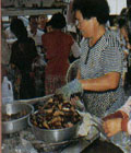 台南县位于嘉南平原中心,背山面海,优越的地理条件加上勤奋的农民,造就出丰饶的农业大县。靠山、临海的乡镇,有着截然不同的自然风貌,同时也发展出各具特色的小吃料理,其中,七股的海鲜、麻豆的碗粿、佳里的肉圆、东山的卤鸭头、新营的鳝鱼面,及盐水的意面,各据山头,皆有不同的拥护者。 七股乡是个小渔村,星罗棋布的鱼塭与泻湖,成就兴盛的渔业养殖;蚵仔、海鲜、虱目鱼也成了当地着名的美味料理。麻豆碗粿以在来米为主要原料,再添加猪肉、香菇、虾米、蛋黄等佐料,料多味美、远近驰名;下麻豆交流道进入市区,四处林立的碗粿招牌令人眼花缭乱,其中以老字号的“碗粿兰仔”和“碗粿助仔”最受食客青睐。佳里肉圆早期称为“包仔”,早就已是当地十分受欢迎的小吃,在众多的肉圆摊子中,以旧市场内的“福记”最老牌。 新营地区埤池溪流特别多,因此常有农民捕捉野生鳝鱼去市场贩售,有了新鲜鳝鱼作原料,新营鳝鱼面的名号也愈来愈响。此外闻名全台的东山鸭头,其发源地也正是台南的东山乡呢! 学甲臭豆腐 地址:学甲镇济生路172号前 营业时间:1400~2100 店内特色:臭豆腐 贩卖臭豆腐已有20多年的王炎治夫妇,原本各自推着小摊在学甲镇上沿街叫卖,后在慈济宫旁摆设摊位;每天自下午开市,客人即络绎不绝。学甲臭豆腐利用特别调配的米浆浸泡,经过油炸后香味更浓,外表金黄酥脆,内部依然滑嫩;上桌前淋上醋、蒜汁、酱油和辣椒酱调味,再佐以特制的泡菜,就是一道价廉物美的美食。 福佳里肉圆 地址:佳里镇旧市场内 营业时间:0800~1200 店内特色:泡汤肉圆、干吃肉圆  已传承三代的“福记”,是泡汤肉圆的创始店。原以卖粉粿、粉圆为业的店主陈金福,将粉类制品加馅油炸,改良为“包仔”(肉圆),推出后一炮而红,鼎盛时且创下每天近一万颗的佳绩,赢得“包仔福”的美名。至今,福记仍遵循古法秘方制作,而在泡汤的原始吃法外,也加入干吃法。 外国安虱目鱼专卖店 地址:七股乡龙山村232号 电话:(06)787-2039 营业时间:1200~2100 店内特色:红烧全鱼、虱目鱼面线、凤梨豆豉鱼头 养虱目鱼有数十年经验的陈俊雄,懂鱼又擅长料理。为了维持虱目鱼的鲜嫩口感,他采用古法养殖,并以绿藻、生苔作为饲料,让鱼群自行觅食,增加其活动力。店里最受食客欢迎的是鱼肚面线,特别挑选过的鱼肚丰腴滑嫩,入口即化,而类似红烧鳗作法的红烧虱目鱼,口感香滑不含刺;此外,以盐水低密度养殖的虱目鱼,肉质极富弹性,现切的虱目鱼生鱼片最能品尝原味。 碗粿兰仔 地址:麻豆镇中山路179号 电话:(06)572-4035.572-4057 营业时间:0600~2000 店内特色:碗粿、猪脚花生汤 碗粿兰仔老板林金兰是第三代经营者。真材实料、粘度佳、口感好,是其受欢迎的主因;内含香菇、瘦肉、蛋黄和虾仁干的碗粿,经1小时蒸炊后,香气远传,再淋上自家调制的蒜味酱油膏,令人难以抗拒。猪脚花生汤是碗粿兰仔另一绝活,饱满滑嫩的猪脚、熟烂好吃的大土豆,配上浓香的汤头,非常可口。 陈记生炒鳝鱼 地址:新营市新进路二段22号前 营业时间:0930~2000 店内特色:鳝鱼意面  陈记生炒鳝鱼至今仍由61岁的老板娘陈蔡玉里掌厨,年纪虽大,但臂力惊人,面对大火炉挥动着手臂,一盘盘又香又脆的鲜鱼面就这么成形,40年如一日,至今她每天仍要炒200盘以上的鳝鱼面。享用香脆可口的鳝鱼面同时,店家还会附赠一碗鳝鱼骨熬煮的清汤,鳝鱼腥味重,但经店家妥善处理后,加入柴鱼,滋味格外鲜美。 篮记东山鸭头 地址:东山乡东中村中兴路11号 电话:(06)680-2856 营业时间:1330~1730 店内特色:油炸卤鸭头 外皮酥脆、肉质柔韧有味、口味甜咸适中,是顾客对“东山鸭头”的评语;炸完马上趁热吃,则是品尝东山鸭头特有风味的诀窍。篮记是台湾各地贩售东山鸭头的始祖,1967年,卖冰维生的黄瑞祥,因生计改卖四季都有顾客的卤鸭头、鸭掌等,且以先卤后炸的独特作法去除鸭肉特有的腥味,不想效果奇佳,啃吮的快感自此风靡全台,成为台湾各地夜市流行的小吃。 椰子林土鸡城 地址:南北乡中坑村74-4号 电话:(06)577-3145.577-3155 营业时间:0900~2200 店内特色:椰子鸡、南瓜米粉、涮羊肉 椰子林的地点虽然偏远,但仍吸引许多政要与饕客不远千里而来。老板利用周边坡地养鸡及栽种椰子、蔬菜,因此料鲜是店家最感自豪之事。自行研发的椰子鸡,是选用放山土鸡与新鲜椰子烹煮而成,因不加水,汤头尽是椰子和鸡肉的原汁原味,十分甘甜有味。