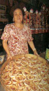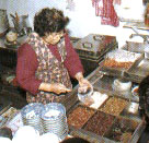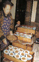 豆干是众所周知的大溪特产,黑豆干尤具代表,其源于四代相传、迄今已逾70年的黄日香,其开业始祖黄屋监于豆干易馊坏,遂发明以焦糖染色的黑豆干,延长其保存期限。黑豆干好吃的秘诀,在于研磨豆浆时即混入香料,使豆干内外皆香气十足,尤其卤后放凉再食用,滋味更佳。 除历史悠久的黄日香外,制作豆干的老店尚有系出同门的黄大目,与具有60余年历史的万里香等;而林立的豆干店已成为大溪镇上主要的街景。除了黑豆干,蒜蓉、沙茶、卤汁等各种口味的包装豆干外,现卤的黑豆干、素鸡、素肚,香喷喷、热腾腾,加一点蒜汁、辣椒,洒上一把香菜,滋味令人久久不忘。 地瓜饼为大溪的另一项土产,昔日大溪人以地瓜蒸熟后捣成泥状,与红糖、糯米粉拌匀,裹上薄薄的面皮,烘焙成颜色与形状都像满月的地瓜饼,既是大溪人中秋节少不了的应景食品,亦是平日生活的可口小点。好吃的地瓜饼内馅Q软、甜而不腻、皮薄而不硬,但因地瓜馅不耐久放,得每日现做,故新鲜是品赏地瓜饼的第一要素。大溪镇上的大小糕饼铺几乎都有贩售地瓜饼,惟以百年老店的合珍香及永珍香、振馨轩较知名;此外,以槟榔心芋头所做的芋头饼、白豆沙饼、咖哩饼也值得一试。 除了豆干与地瓜饼,传承四代的百年油饭、人情味十足的里长嬷碗粿、野味大全的腹中补食班,和唤起童年美味的正丰米麸、赖妈妈豆花等,都是兜游大溪时,令人难忘的好滋味。 里长嬷碗粿 地址 和平路79号 营业时间 周日0800~1200 店内特色 咸碗粿、黑糖碗粿 里长嬷邱李宝秀在大溪卖碗粿已经数十年了,碗粿纯以在来米蒸饮,加上脆爽的萝卜干和爆炒过的香菇、虾米,淋上也是大溪特产的蒜汁金兰酱油,捧着30年左右的古董碗,与阿嬷闲话家常,感受备觉温馨;此外,黑糖及绿茶口味的碗粿也十分可口。由于里长嬷年事已高,因此只有周日上午才“偶尔”开门摆摊,想吃的人可得碰运气。 腹中补食班 地址 中正路37号 电话 (03)388-6001,388-2926 营业时间 1100~2000 店内特色 鲶鱼料理、土鸡、炒野菜  大溪附近深阔的水库、洁净的溪流,提供了肥美的鲢鱼、鲶鱼、溪虾、溪哥等,中正路上的腹中补食班即善用天然食材,做出极富野味的美食,尤其是鲶鱼料理更是拿手绝活,药墩、三杯、红烧、清蒸等作法都不错,其他如甲鱼、毛蟹的料理也很在行,而土鸡、炒桂竹笋、炒野菜等亦为招牌。 黄日香豆干本铺 地址 和平路56号 电话 (03)388-2546,388-2055 营业时间 0700~2100 店内特色 黑豆干、姜丝豆干 为求新鲜与原味,店家仍保留焦糖染色的过程,游客可藉此了解黑豆干“黑”的缘由,店内特别制作卤过后再放凉的黑豆干,细细咀嚼最能吃出原味。除了黑豆干,袋装的各种口味豆干也很受欢迎,其中姜丝豆干在油豆腐内包着甜腌姜,口味独特。店内也贩卖热腾腾的现卤豆干、素鸡、素肚等。 赖妈妈传统豆花 地址 多目标体育馆1号 电话 (03)388-9646 营业时间 0700~1800 店内特色 原味豆花  赖妈妈豆花位于体育馆一楼入口处,在大溪已有20多年历史了。店内唯一的产品即为自制的传统豆花,质地绵密,口感滑润,宛如细致怡人的布丁,搭配花生、红豆、大红豆、绿豆等,冷热皆宜;然而熟客多偏爱原味,简单地淋上姜汁、糖水, 加上炖得入口即化的花生,最能感受豆花清甜的原味。 合珍香饼行 地址 中央路161号 电话 (03)388-2950 营业时间 0700~2100 店内特色 地瓜饼、芋头饼、平沙饼、咖哩饼 位于三角公园旁,为制作寿桃、面龟、喜饼的百年老字号,其地瓜饼亦为店内闻名的糕饼,所做的饼因地瓜泥与糯米粉的比例恰到好处,因此口感十分Q软且不粘牙,内馅质地细致,外皮薄而香酥;而以槟榔心芋头做的芋头饼、入口即化的白豆沙饼、香气浓重的咖哩饼,也很受欢迎。 正丰食品行 地址 中正路30号 电话 (03)388-0942 营业时间 0900~1900 休息时间 周一、三1400~1600 店内特色 糙米米麸、四神米麸、原味米香 制作米麸及米香已经超过20年头,是大溪硕果仅存的“专业”店家,其中糙米米麸以纯糙米研制,含有丰富的纤维素,具有健胃肠、治下痢的功效,而四神米麸则是加入四神一同研制,可以养气补身。爆米香为制作米麸前的重要过程,加入花生、海苔、香菜等口味,便成了令人怀念的零嘴。 百年油饭 地址 民权路17号 电话 (03)388-1681 营业时间 平日1630~2300,假日1100~2300 休息时间 周三 店内特色 满月油饭、筒仔米糕、赤肉羹、木瓜排骨汤、龙骨髓汤 百年油饭原以制作喜庆祭祀的油饭为主,一个世纪以来极受好评,而年节之外,店里长年供应的筒仔米糕,亦提供绝佳的米香。制作油饭的糯米事前须经长时间的浸泡,炊煮出来的米饭才会香甜Q软,再搭配经过麻油爆香的红葱头、精肉、香菇、虾仁等,让人食指大动;此外还精炖多种鲜美汤料,是最佳搭配。 (来源于:华夏经纬网)