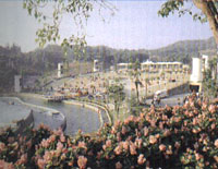 亚哥花园位于台中东郊的大坑风景区内,占地40余公顷,揉合中国园林与欧式花园景观,在园艺专家的规划下,四时花卉依序绽放,游客无论何时造访都能看到一片缤纷的花海,素有“新加坡胡姬花园第二”之称,是中部着名的旅游去处。 由大门循着兰花坊、穿过机械游乐园,可见拱桥式的古桥横跨于花海之中,此为亚哥花园仿河北赵州桥所建的安济古桥,古朴的桥身,与雅致的汉唐水梯融为一体,一旁还有仿民初建筑的茶之乡茶艺馆,颇具古典气息。临近的古榕区,栽植了一群自彰化移植而来的老榕,蓊郁的树貌与下垂的树须,可见其历史。 羊咩咩亲子园是园区最富自然气息的乐园,山羊群在此放牧生养,除了原木搭建的畜舍外,每天上、下午母羊羊乳最充足的时段,园区还开放游客入内亲自挤羊奶,体会农村生活。  此外,绵延数公里的弯曲花坡,最能表现亚哥花海景观,坡道两旁的花卉一路绽放,姹紫嫣红,令人目不暇给。而以九重葛为主题的龙凤花坡,及以国剧脸谱点缀期间的露天国剧脸谱区等,皆结合造景与花卉景观,颇具特色。 除了主题造景外,“水舞”与“水幕电影”更是亚哥花园的招牌特色,上百种彩色灯光配合喷泉,随着音乐节奏,舞出华尔兹、探戈等舞步或是一幕幕的电影剧情,教人叹为观止;尤其入夜之后,隐身于花丛之间的昏黄灯光盏盏亮起,加上璀璨的镭射水舞,为园区营造出魅丽的夜色气氛。 乘车风向标: 自台中火车站前搭台中客运60路,或自绿川东街搭仁友客运2路,在亚哥花园下车。