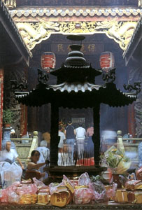 <%beginrecord%><%endrecord%> 镇澜宫为大甲镇赫赫有名的老庙宇,位于顺天路和蒋公路交叉口旁,是大甲地方的信仰中心。镇澜宫建庙已有200多年历史,因信徒众多、香火旺盛,庙体一再整修重建,呈现出今昔交错、华丽与古朴杂揉的瑰丽面貌,被认为是现代人花大钱盖大庙的典范。 庙内有多件古物流传至今,例如乾隆时期的“护国庇民”、“佑济昭灵”古匾,光绪帝赐的“与天同功”古匾,以及“诚求立应”、“慈光普照”、“功恭功一”等,都是自清朝保留至今的古物。 今天的镇澜宫,在工艺匠师长年雕琢下,呈现繁复辉煌的庙貌。庙前龙柱为精细浑厚的石刻镂雕,屋顶布满五颜六色的人物、花鸟、走兽剪黏,詹下大片雕饰按金,正殿神龛周遭更是富丽,层层叠饰,金碧辉煌,散发出华丽不俗的庄严气象。 每年农历3月,镇澜宫的妈祖必到嘉义新港奉天宫进香,各地信徒不分男女组成声势浩大的进香团,进行为期8天7夜的徒步参拜,这也就是着名的“大甲妈祖绕境进香”。 乘车风向标: 1.自台北北站或台中干城站搭往大甲的台汽客运,在大甲下车。 2.从台中火车站前搭往大甲的丰原客运、巨业客运,或自丰原搭往大甲的丰原客运,皆在大甲下车。 3.搭乘海线纵贯铁路,于大甲站下车。