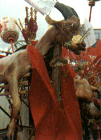 新埔枋寮义民庙于每年农历7月20日举行的义民节活动,是台湾客家人一年当中最重要的盛典,也是本省目前保存较完整的民俗祭典之一。每逢此日,来自全省的客家乡亲总将义民庙挤得水泄不通,而放水灯、赛神猪及羊角竞长等祭祀活动,更将活动烘托得热闹非凡。 义民节祭祀活动起源于清道光15年(1835年),附近各大庄为了纪念先烈义行,便选定农历7月20日举行祭典,由各大庄轮值祭祀。轮值的庄头除了要主持祭典外,还要负责牲品,安排戏班及设宴请客,由于每个村庄隔15年轮值一次,所以每一庄头无不竭尽全力将祭典办得热热闹闹,其中不乏有互相较劲的意味。  每到义民节前夕,轮值的庄头便家家户户张灯结彩,杀羊宰猪迎接这天的来到。大体说来,义民节最主要的目的在超渡死难义民,同时亦超渡一般游魂,故在精神层面上与中元普渡相去不远,祭典活动也与基隆中元祭相仿,有放水灯、起灯篙、糊大士爷、神猪竞重、羊角竞长及普渡等活动。 祭典通常为农历7月18~20日,第一日为“入坛”,庙前即登起高达数丈的灯篙,招请诸方神明及各路野鬼来,庙门前尚请专司供品分配的鬼王——大士爷坐镇,并举行祭祀,诵经声终日不断;第二日于庙前的凤山溪施放水灯,超渡水中孤魂,引渡西方极乐世界,每年值此夜晚,凤山溪畔万头攒动,溪中灯火连绵成河,场面之大不下于基隆中元祭。  7月20日是祭典的最高潮,乡民们以猪、羊、鸡、鸭等牲礼普施,供祭孤魂野鬼,祭典中少不了各种阵头表演,其中客家山歌竞唱更将客家风情展现无遗,所有的祭典活动中最引人瞩目的莫过于赛神猪及羊角竞长,名列前茅的大猪公及老山羊,皆以华丽的高塔装饰,所有得奖的牌匾悬挂两侧,每只神猪均达千斤以上,罗列于庙埕之前,场面十分壮观;而老山羊则眼戴墨镜、口衔烟斗,一副老绅士的打扮,十分有趣。神猪与老羊皆于20日当天中午12点至下午3点间陈祭庙前,并在傍晚列于街道,供人参观。普渡大约在下午4点左右结束,此时庙前杂耍、卖艺的摊贩,看戏、进香的人潮逐渐散去;但轮值村庄上盛大的宴席才正要开始,直到午夜时分,大士爷像在熊熊火焰中化为灰烬,一年一度的义民节盛典才告正式落幕。