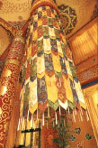 白马山菩提讲堂是台湾第一座正统的藏传佛寺,从建筑到佛像的打造,均依照藏传佛寺的传统,颇具异域风格。开光以来,除了号召许多信徒前往参拜,也成为游客参观的热门景点。  白马山菩提讲堂于1997年底开光落成,楼高四层,整座建筑皆依照藏传佛寺的传统风格,并结合中国宫殿式回廊琉璃瓦及印度佛寺的屋顶钟塔造型,金碧辉煌。正殿屋顶的双鹿法轮,为藏传佛寺的建筑特色之一。一楼为藏式大经堂,镂金漆花,鲜艳华美,主要供奉释迦牟尼及八大菩萨,一旁还有转经轮和巨大的法幢宝幡,庄严无比。二楼是起居室,三、四楼分别为药师佛殿和阿弥陀佛殿。  庙宇内的佛像均由西藏拉萨的巧艺工匠打造而成。顶楼的舍利檀城观音殿里,除了奉祀观音菩萨等外,中央还制作了一座观音彩沙檀城,为岛内首见。檀城是金刚乘本尊的宫殿,梵语称为“曼陀罗”,这座檀城是以深海寒水石为原料绘成,颜色、形状、格式都有定规,细腻曼妙,檀城上方还有一座迦叶佛的舍利塔。 讲堂后面还有一座小巧的庭园,漫步园中,可望见寺墙上的巨幅布达拉宫壁画,高18公尺,宽16公尺,笔法巧妙,宛如真境,呈现圣城的气势。 交通风向标: 由斗六—竹山的台西客运,在九芎站下车后,循往湖本村的乡道继续前行约1公里即可。
