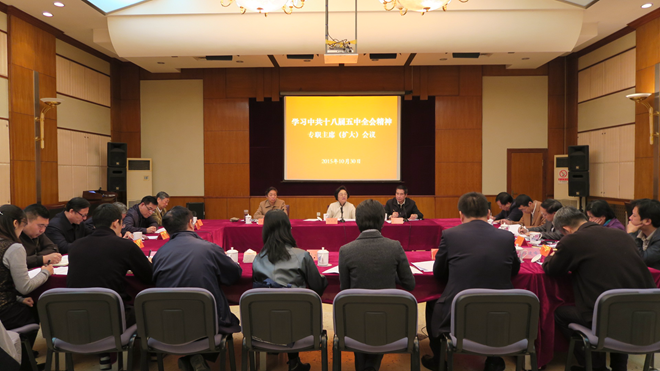 黄志贤常务副主席、苏辉副主席、宋焱副秘书长等同志在会上畅谈了学习体会。与会同志认为,“十三五”规划描绘了国家未来五年的发展蓝图,令人振奋,催人奋进。大家一致表示,坚决拥护、完全赞同五中全会的各项决议,要把思想和行动统一到中共中央的决策部署上来,认真学习领会全会精神,明确目标,汇聚共识,紧密结合自身工作实际,为国家发展献计出力。